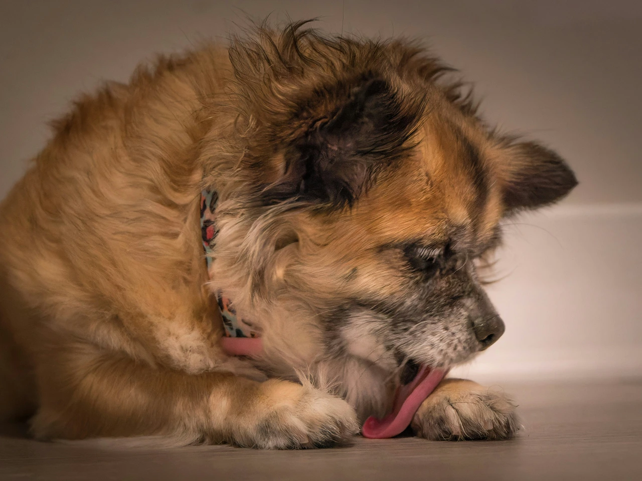 Dry Skin or Weather Changes: Cold air and low humidity may cause dryness, making your pet lick to soothe irritation.